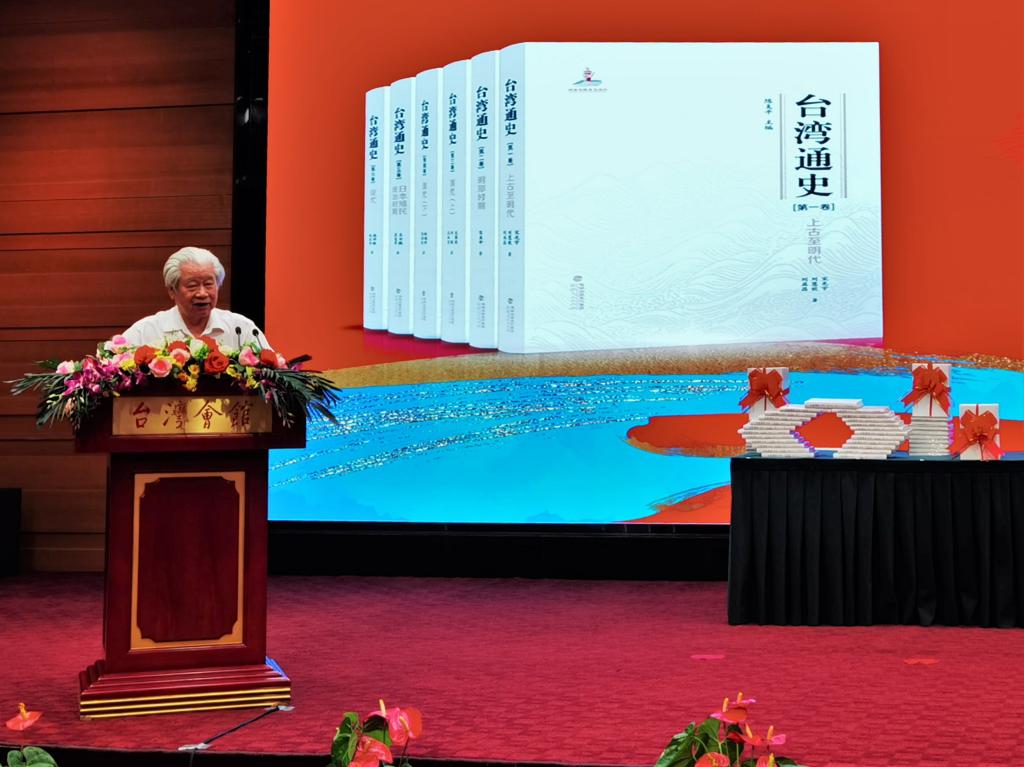 杨毅周在致辞中指出,《台湾通史》由两岸学者通力合作写成,生动而全面地展现了宝岛台湾从远古到现代的发展历程,是目前祖国大陆出版的第一部《台湾通史》。本部丛书编写的过程是“两岸一家亲”的真实写照,体现了两岸学者的历史担当,为推动海峡两岸史学界“共享史料、共写史书”迈出了坚实的一步。这部《台湾通史》的编撰出版,必将有利于海峡两岸同胞正确认识台湾史,为加深两岸的相互理解、增进互信认同注入新的活力。希望两岸双方继续推动“共享史料、共写史书”,加强台湾史、两岸史的研究、整理、教育与传播,不断巩固两岸同胞共同的历史记忆,促进同胞心灵契合,增进和平统一认同,凝聚起两岸同胞致力于祖国统一和中华民族伟大复兴的共同意愿。