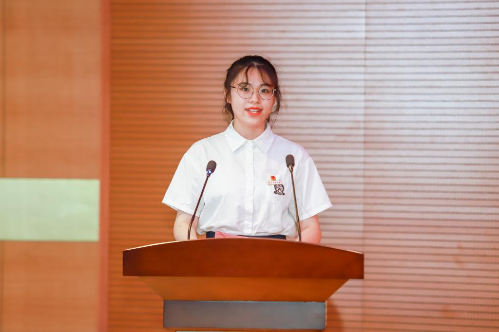 2021年度福建省优秀共青团员、教育科学学院许悦同学作为获奖学生代表发言。她表示,在共青团新的百年征程开启之际,登录入口青年学子应自觉用习近平新时代中国特色社会主义思想武装头脑,做具有远大理想和坚定信念的爱国者、奉献者、奋进者,努力成长为堪当民族复兴重任的时代新人。