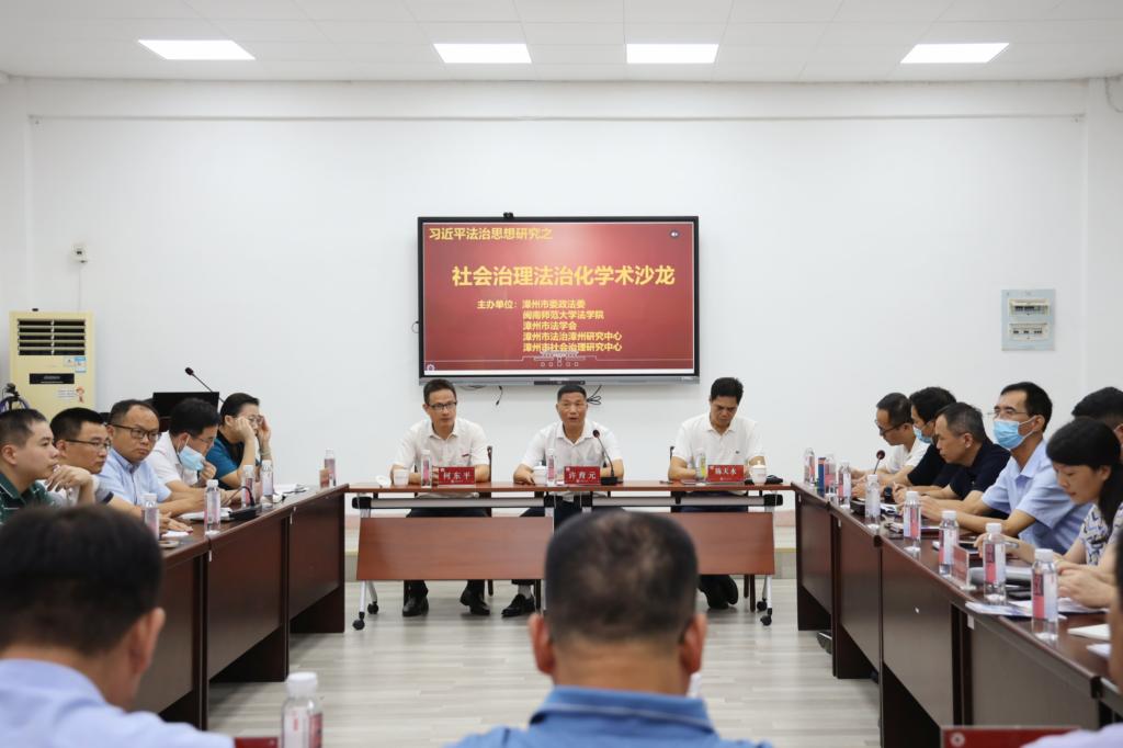 揭牌仪式后举行“习近平法治思想研究之社会治理法治化”学术论坛。论坛由漳州市委政法委副书记、漳州市社会治理研究中心主任许育元主持。法学院院长何东平教授在论坛上作主题发言。市中级人民法院、检察院、公安局、司法局等单位与会人员共同交流社会治理经验、共商市域社会治理策略。