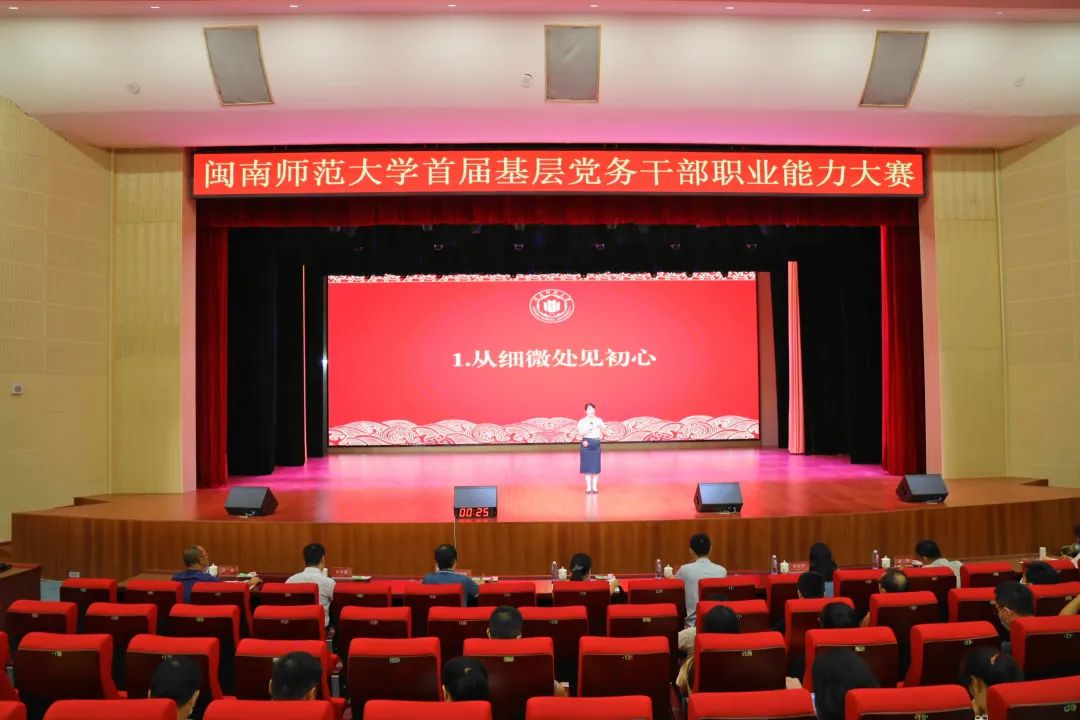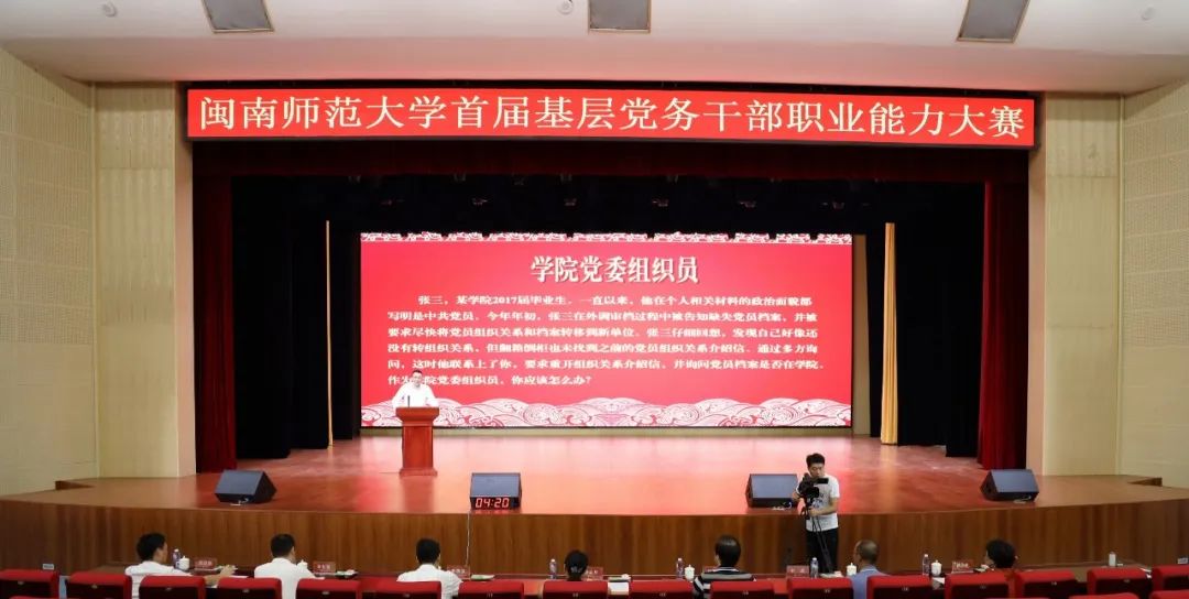 本次比赛共19支代表队参赛,参赛对象为学校基层党务干部。比赛内容包含党务知识测试、微党课展示、案例分析、谈心谈话四个环节。党务知识测试由所有参赛选手参加,微党课展示、案例分析、谈心谈话等实践环节由各参赛队分别选派队员参加。实践环节的比赛在闽南文化艺术中心举行。比赛在红色歌舞《灯火里的中国》中拉开帷幕,各参赛选手结合自身工作实际,用生动而又富有教育意义的微党课、专业而又充满启迪效果的案例分析、严肃而又不失温情的谈心谈话,展现了新时代党务干部不负韶华、开拓创新的精神风貌与责任担当。