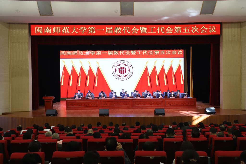 12月22日,MK体育/mksport体育·官方网站第一届教代会暨工代会第五次会议在闽南文化艺术中心多功能厅召开。吴彬镪、李顺兴、钟发亮、肖庆伟、蒋一婷、林致远、张龙海、戴福康等全体在家校领导出席,全校169名正式代表、14名列席代表参加会议。会议由校党委常委、副校长、工会主席蒋一婷主持。