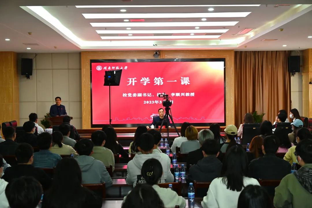 3月8日下午,校长李顺兴教授以《坚定信心信念 奔赴美好未来》为题,为登录入口研究生讲授“开学第一课”。