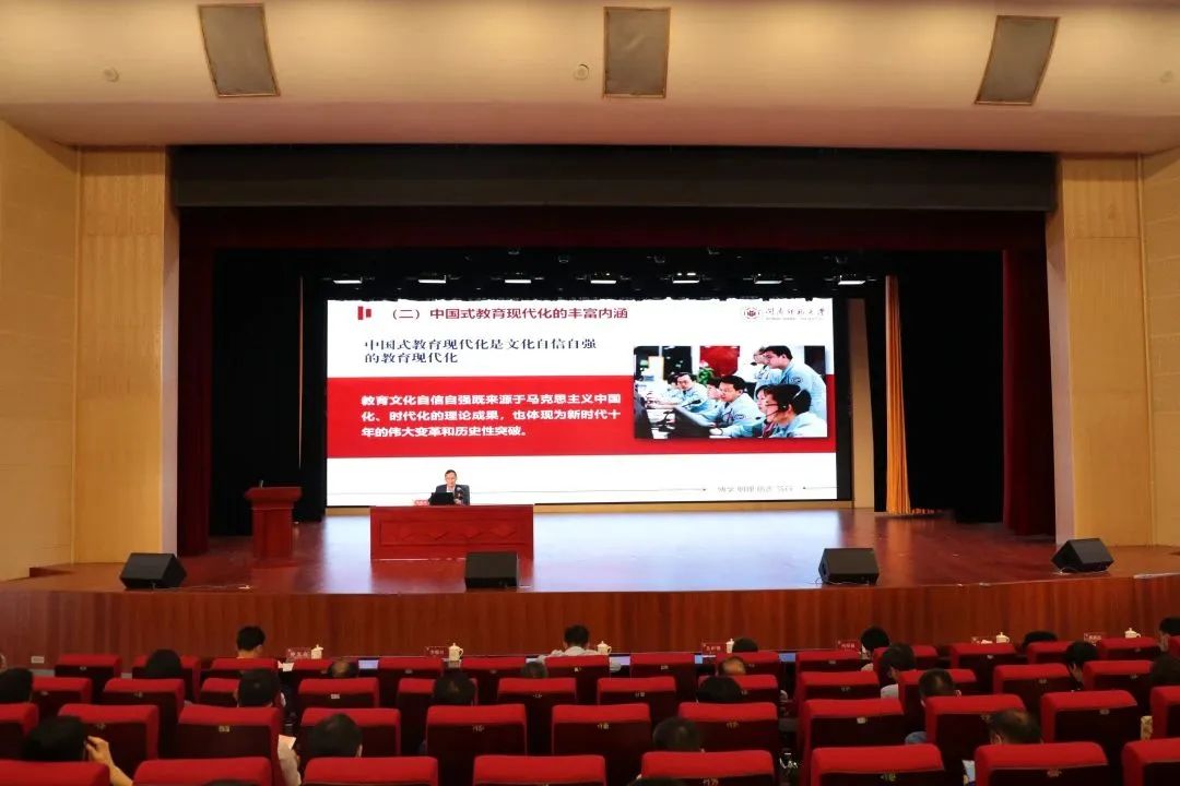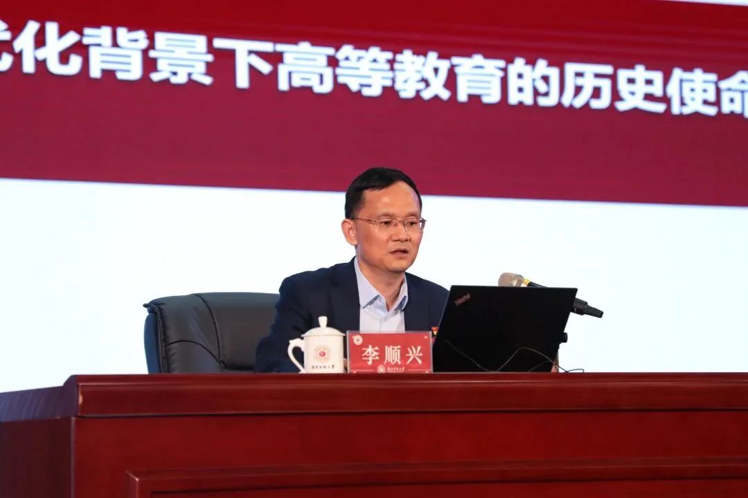 李顺兴分析了中国式现代化与中国式教育现代化的关系,阐释了中国式教育现代化的丰富内涵。他指出,中国式教育现代化是社会主义的教育现代化,是高质量发展的教育现代化,是文化自信自强的教育现代化。在中国式教育现代化背景下,高等教育要承担起时代赋予的历史使命,坚持讲党性,办好社会主义大学;发挥引领性,体现高校独特价值;增强开放性,深化国际合作交流。