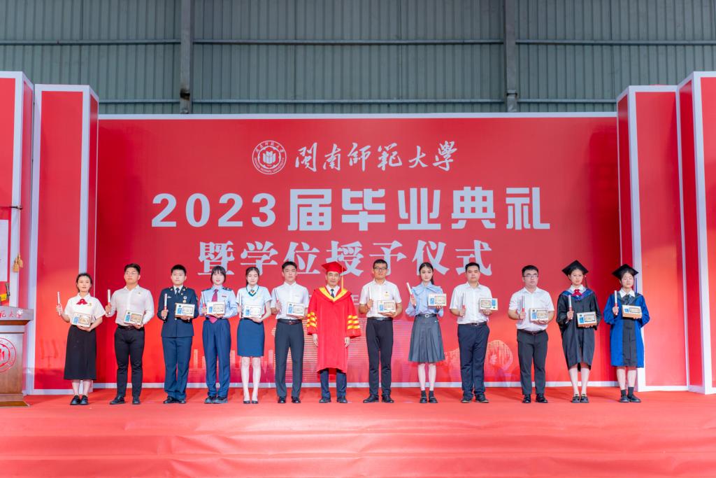 上午8点,庄严的国歌声响起,典礼正式拉开帷幕。校党委常委、副校长张龙海宣读获得博士学位、硕士学位、学士学位人员名单和2023届优秀毕业生表彰决定。今年,学校共有682名研究生获得博士、硕士学位,4603名本科生获得学士学位,他们将接过时代的接力棒,奔向各自人生的下一趟旅途,书写人生新篇章。原创视频《毕业礼物》与诗朗诵《六月骊歌》为毕业生送去母校的祝福,将别情与牵挂化为整装出发的动力。
