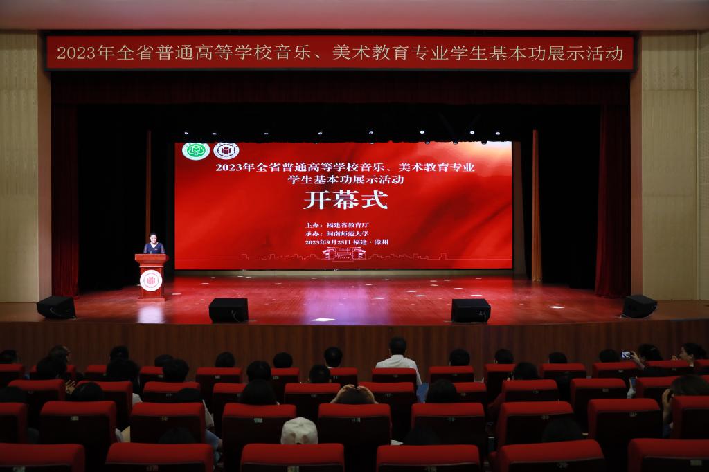 9月25日,由福建省教育厅主办、MK体育/mksport体育·官方网站承办的2023年全省普通高等学校音乐、美术教育专业学生基本功展示活动开幕式在闽南文化艺术中心多功能厅举行。省教育厅副厅长李绚,副校长林致远出席开幕式。