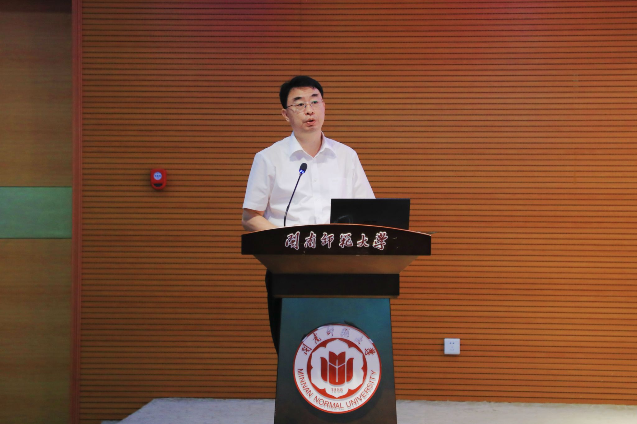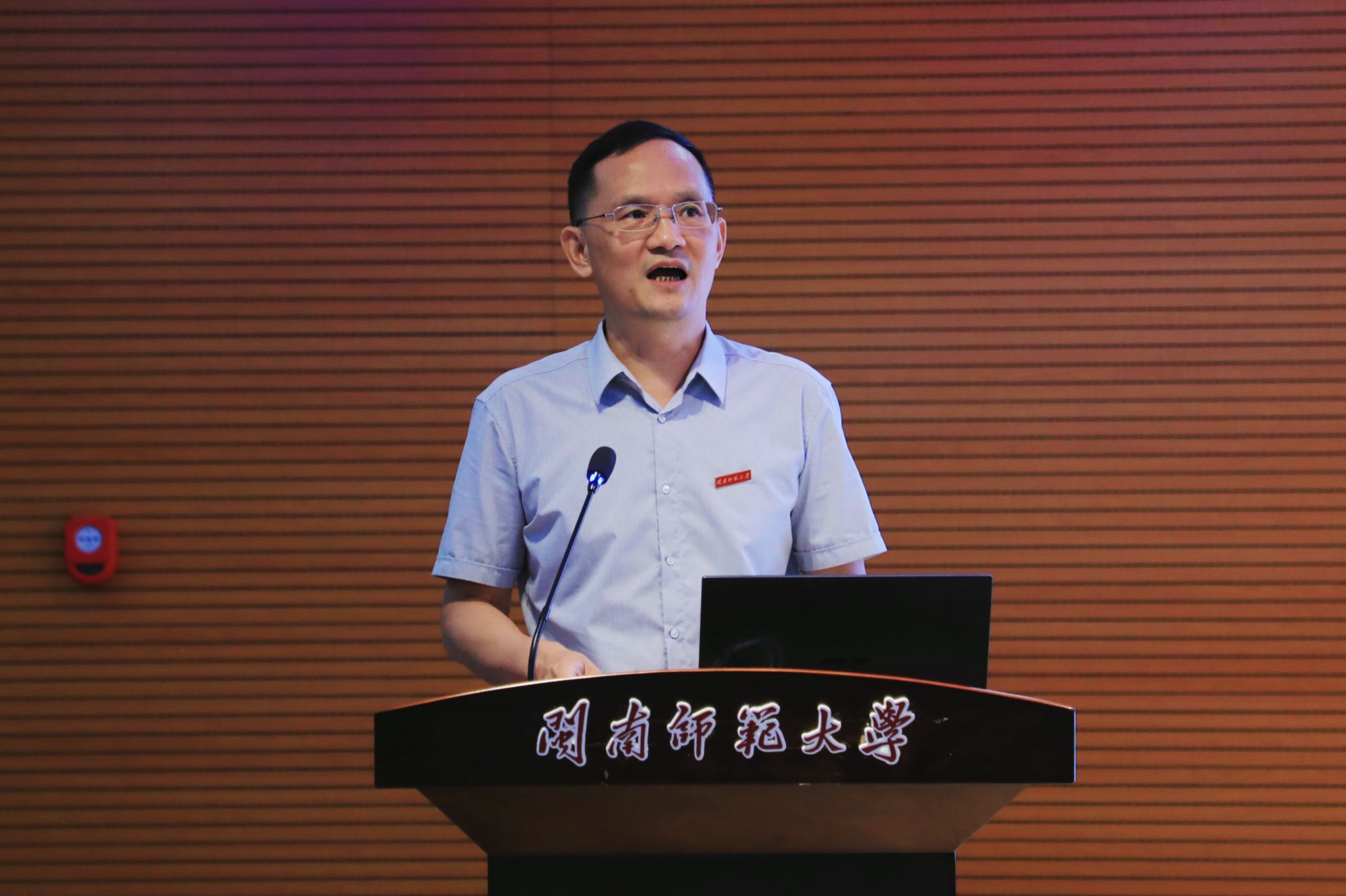 ▲南宁师范大学校长、博士生导师李传起教授作题为《大学的功能演变和评价改革》的专题报告