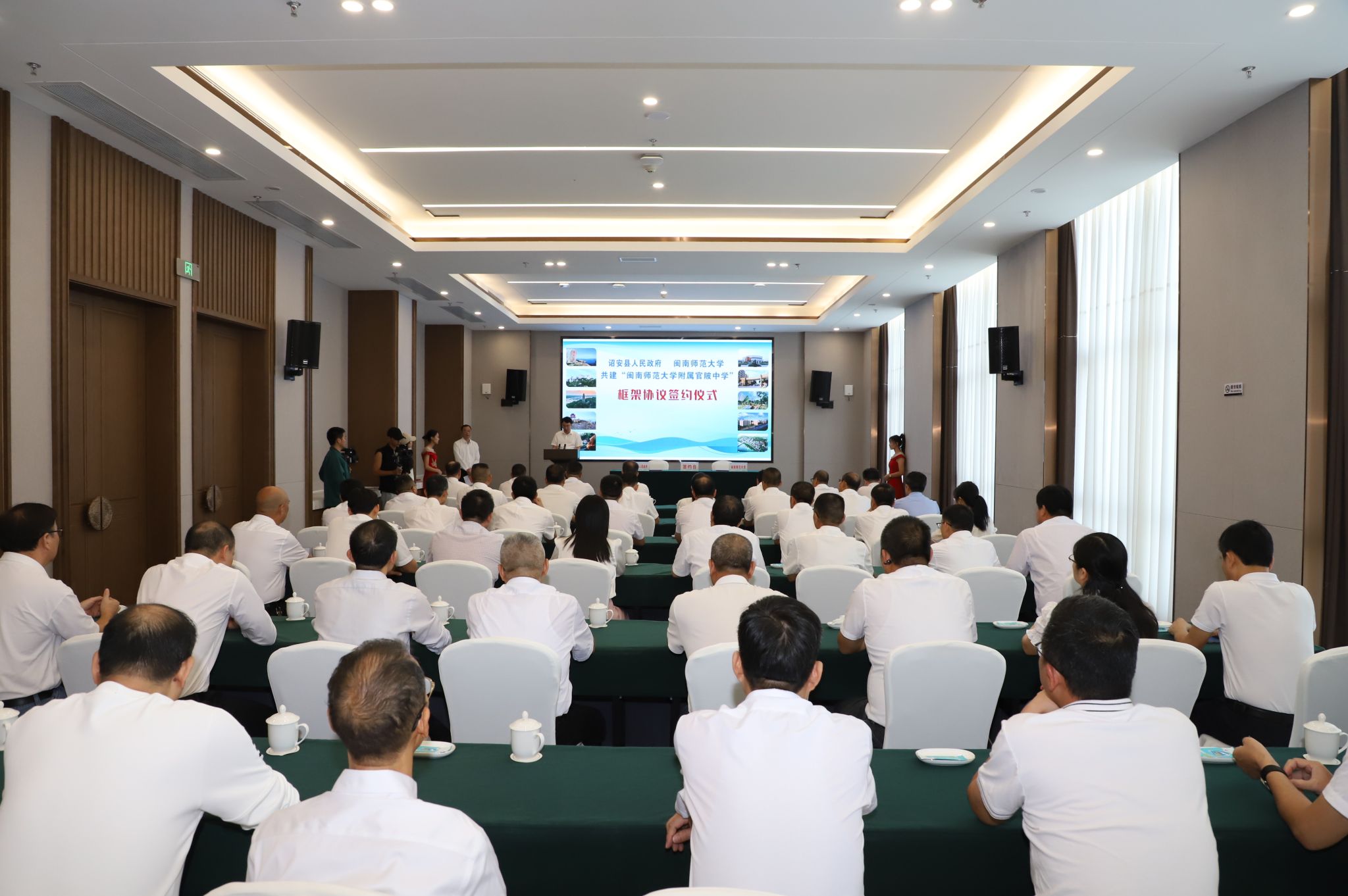 10月24日,登录入口与诏安县人民政府培育共建“MK体育/mksport体育·官方网站附属官陂中学”框架协议签约仪式在诏安县凌波酒店举行。校党委常委、纪委书记、监察专员戴福康,诏安县委副书记、县长黄庆华,县委常委、副县长林文绍出席签约仪式。