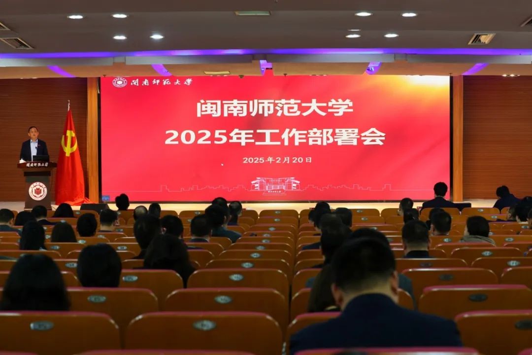 会上,校党委副书记、校长张龙海作题为《坚定信心勇作为 深化改革促发展 奋力谱写“双一流”大学建设新篇章》的讲话。他回顾了上一年学校各项事业取得的工作成果,并就2025年重点工作进行布置。为进一步推动学校各项事业高质量发展,经学校研究决定,将深入开展“创先争优年”行动。他强调,要坚持政治引领,强化思想理论武装,激发基层党建活力,完善思政教育体系,进一步提升党的领导力。要坚持深化改革,完善学科发展体系,创新人才培养模式,提升科研创新质效,扩大对外合作办学,加强师资队伍建设,进一步推动内涵快速发展。要坚持服务导向,强化使命担当,服务国家战略需求;深化产教融合,服务区域产业发展;厚植红色基因,服务老区苏区振兴;夯实育人根基,服务基础教育建设,进一步彰显办学社会价值。要坚持发展思维,解放思想,凝聚办学发展共识;提升本领,锻造治理先锋力量;担当干净,激发干事创业活力;创先争优,全面提升办学质效,进一步凝聚奋勇争先合力。