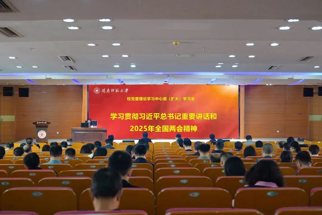3月20日下午,校党委在逸夫图书馆五楼报告厅召开理论学习中心组(扩大)学习会,传达学习贯彻习近平总书记重要讲话和2025年全国两会精神。全体在家校领导,全校中层干部,各民主党派、统战团体负责人,校“青马工程”青年干部培训班(第四期)学员参会。会议由校党委宣传部、统战部部长徐继红主持。