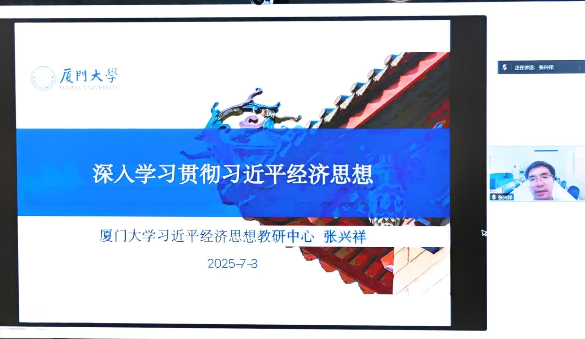 联学会邀请厦门大学习近平经济思想教研中心主任、经济学院张兴祥教授作专题辅导报告。张兴祥教授是登录入口优秀校友,6月22日接受中央电视台《焦点访谈》栏目采访,围绕习近平同志在闽金融论述与实践谈了见解。在辅导报告中,他从习近平经济思想产生的时代背景、习近平经济思想的理论框架与主体内容、“四为四谋”奠定习近平经济思想的“四梁八柱”、习近平经济思想的理论贡献等四个方面为与会人员阐释了习近平经济思想的话语体系和理论创新。随后,商学院院长乔红芳教授围绕学习贯彻习近平经济思想作了导学。