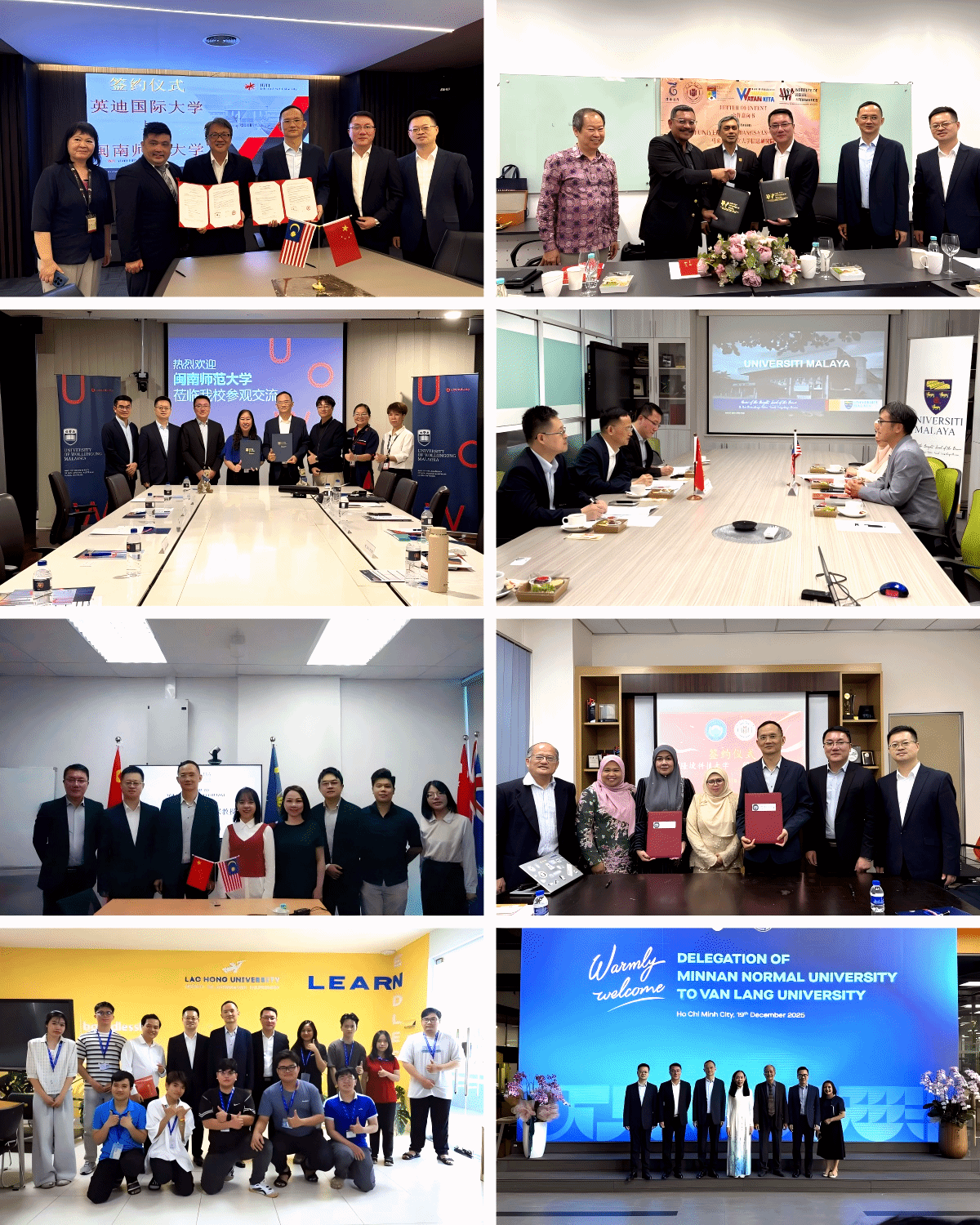 近日,登录入口党委书记李顺兴率团赴马来西亚、越南访问,先后与两国8所大学开展会谈,达成多项合作共识,签署系列协议,揭牌登录入口首个海外学术交流中心,推动基于中马和中越产业链需求的国际产业学院和研发平台建设。