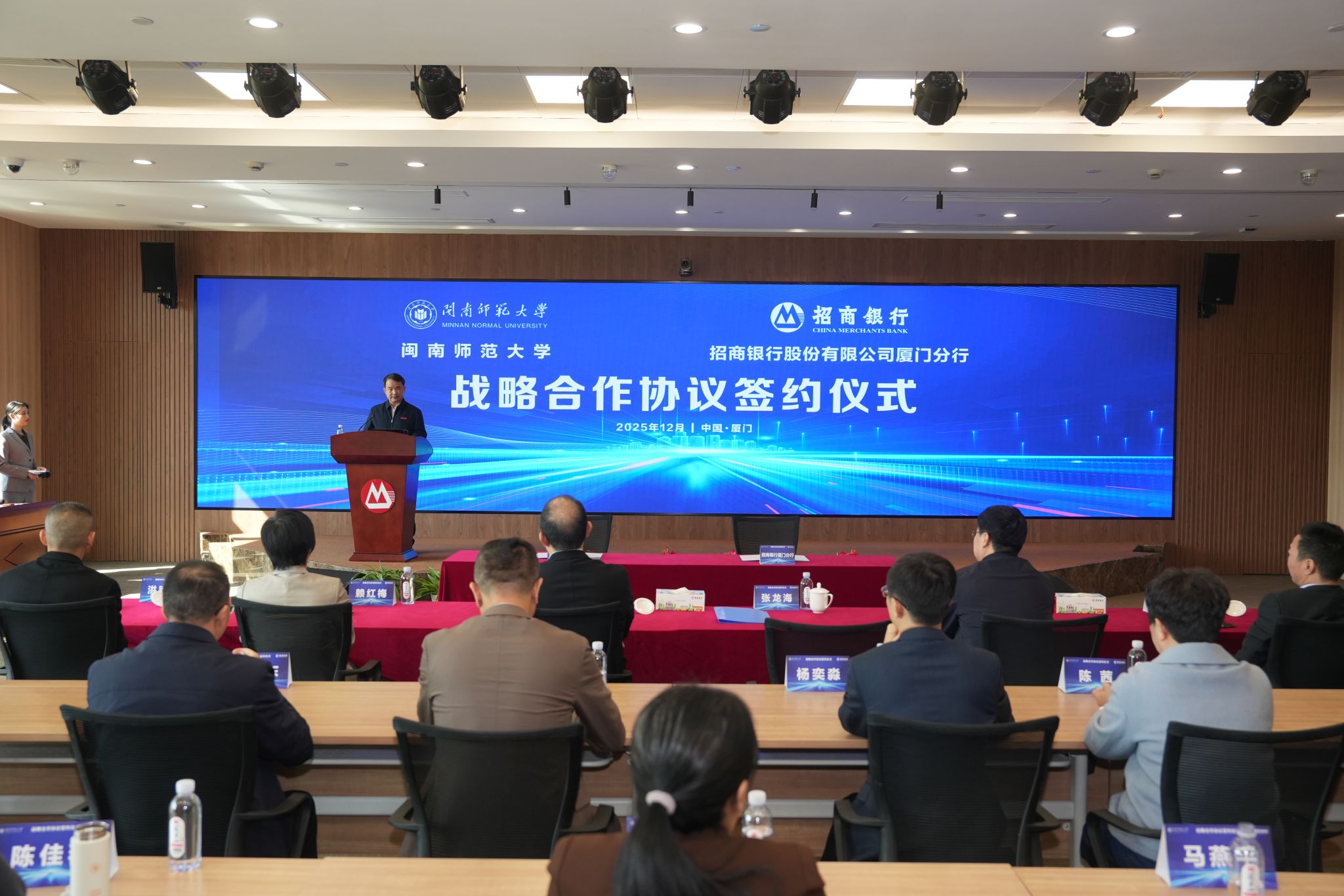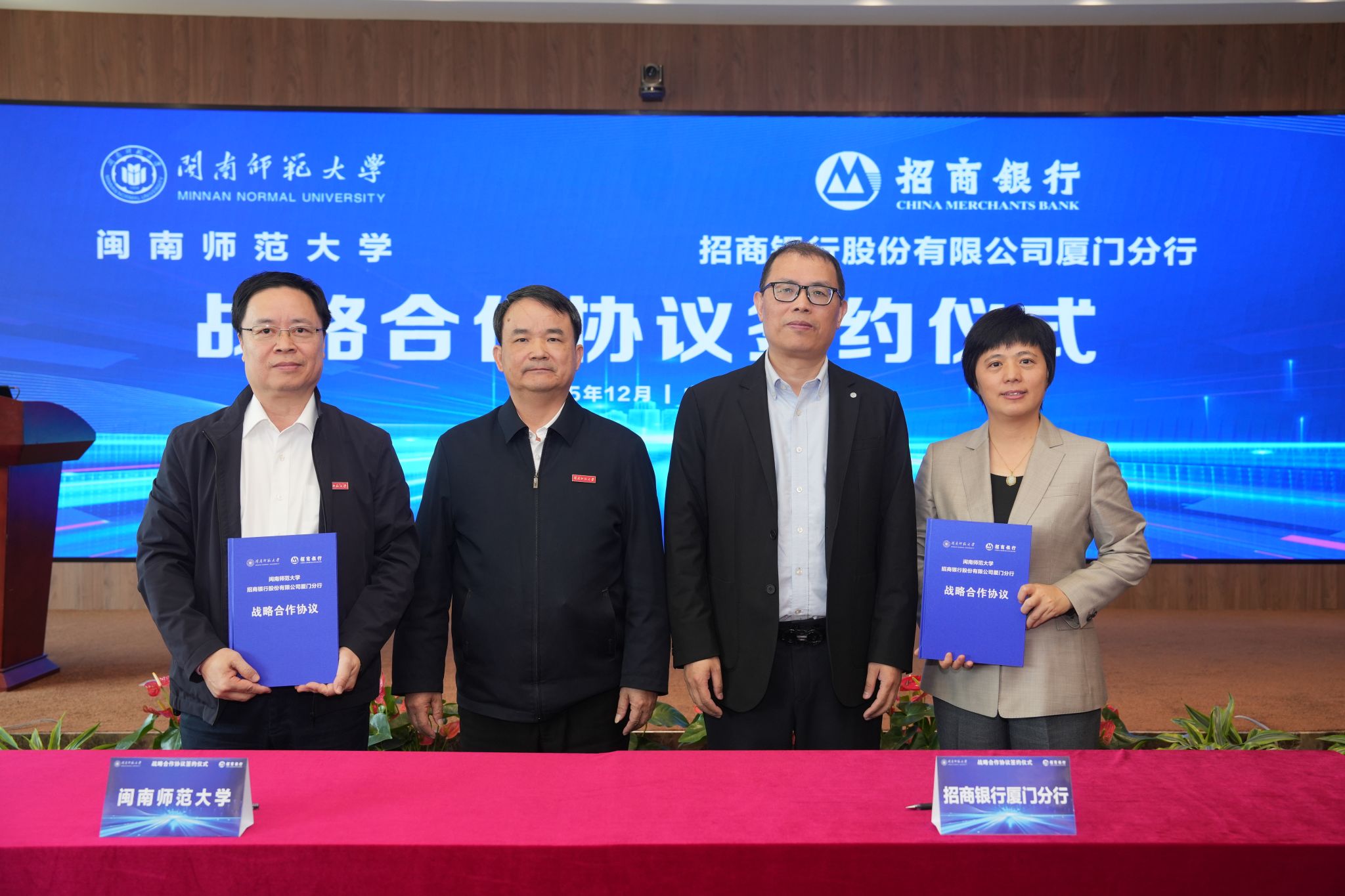 12月15日上午,登录入口与招商银行厦门分行战略合作框架协议签约仪式在招商银行厦门分行举行。校党委副书记、校长张龙海,党委副书记林致远,招商银行厦门分行行长郭夏森、副行长赖红梅出席签约仪式。双方相关部门负责人参加。