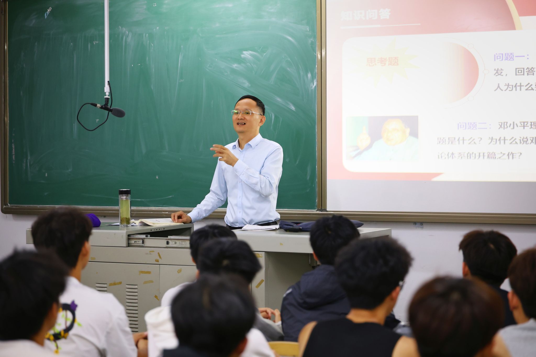 四堂“微思政”课把理论转化为可操作的方法与路径,马克思主义的实践品格在行动中愈发鲜明。他围绕马克思主义的实践品格,强调从真实问题出发、以行动验证认知,引导2024级体育教育(师范)专业学生在未来体育教学中,立足体育师范专业能教、会练、善组织的复合优势,以地域与人群体质为依据推进适宜项目,在群体活动中涵养团队精神与文化认同。在与2025级法学专业学生交流中,他针对涉外法治人才紧缺的现状,勉励同学们在校阶段夯实民商法、国际仲裁、涉外诉讼与国际规则能力,主动服务中国企业出海与全球治理。走到2024级食品科学与工程专业学生身边,他以关帝文化与食品IP的关联、月子文化的价值挖掘等为例,强调以文化叙事与体验设计提升产品溢价与社会效益,把专业学习与区域文化、公共健康相融合。谈及人工智能教育时,他强调以场景定义问题、以问题牵引创新,希望2025级人工智能专业学生能够立足校情、发挥所长,以技术突破开辟新赛道。他和学生这么说道,“既要善用历史规律的‘望远镜’洞察趋势,也要用好解决现实问题的‘显微镜’破解难题,在智能技术前沿实现历史智慧与现代创新的有机融合。”