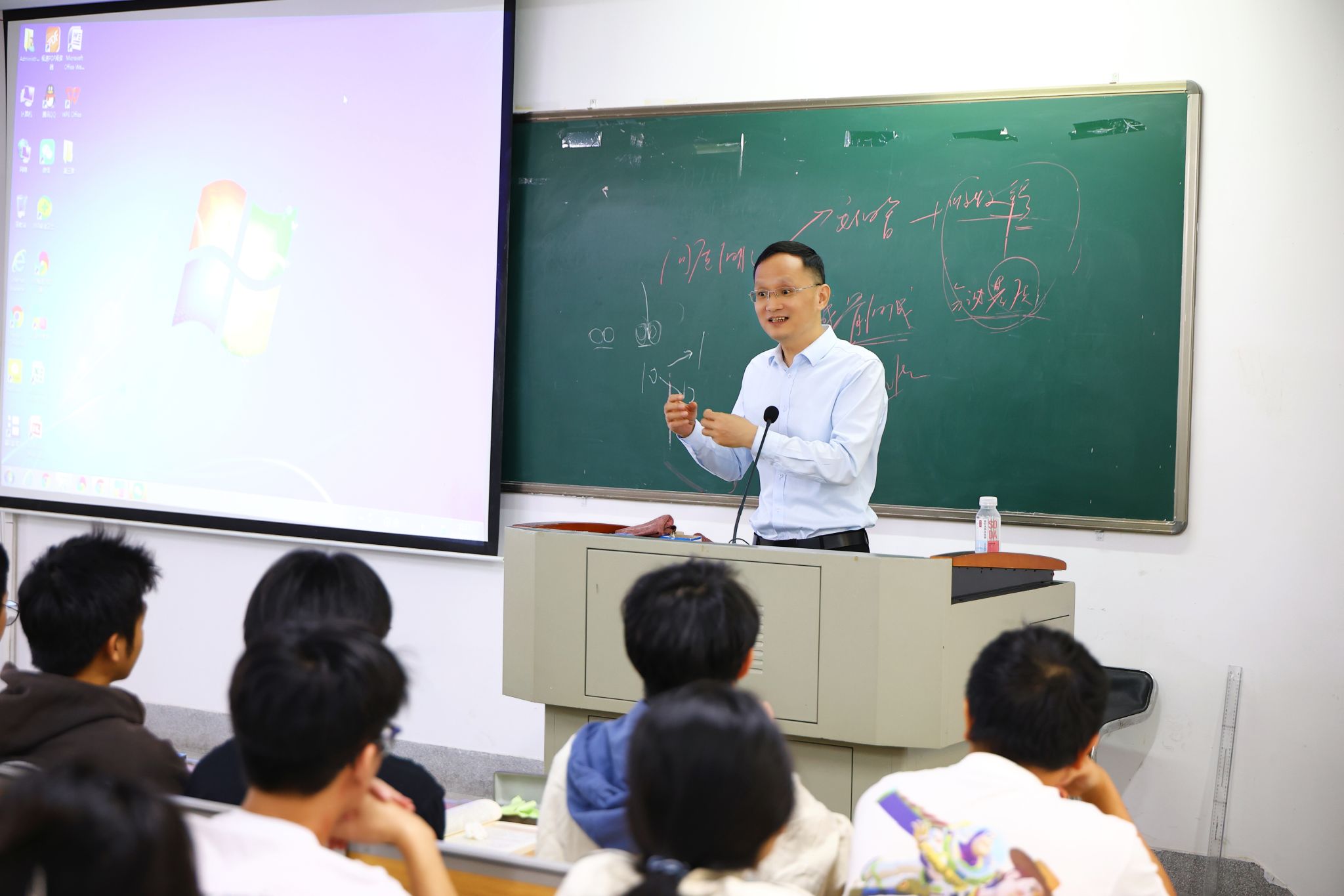 在生物科学与技术学院,他以隐蔽战线革命英雄的坚守阐释价值选择的长期主义,结合骨膜传导传音等技术交叉创新,提出将数据纳入生产资料、从价格竞争转向价值竞争的路径,并以闽南文化、关帝文化赋能食品品牌,延展文旅与健康场景,贯通信仰、方法、产业与创意。在体育学院,他以岳麓书院和中央党校共同强调的实事求是为引,指出要坚持从实际出发、因材施教,区分群众体育与竞技体育,倡导以舞龙舞狮、跳绳等群体活动增强凝聚力,面向体教融合、赛事运营、文创开发与企业健康管理拓展职业边界。在法学院,他从社会主义核心价值观切入,结合国有企业的职责与五级书记抓扶贫的组织优势,辨析民主与自由的概念边界,批判零和博弈,强调以人民为中心的治理智慧。在物理与信息工程学院,他从改革开放与真理标准大讨论梳理马克思主义中国化进程,以医疗级血氧传感器为基础开发特色婴儿袜等案例,启发人工智能专业学生把数据与算法视作新型生产资料,借鉴农村包围城市的战略思维开展大模型二次开发,做到既见大势也解难题。