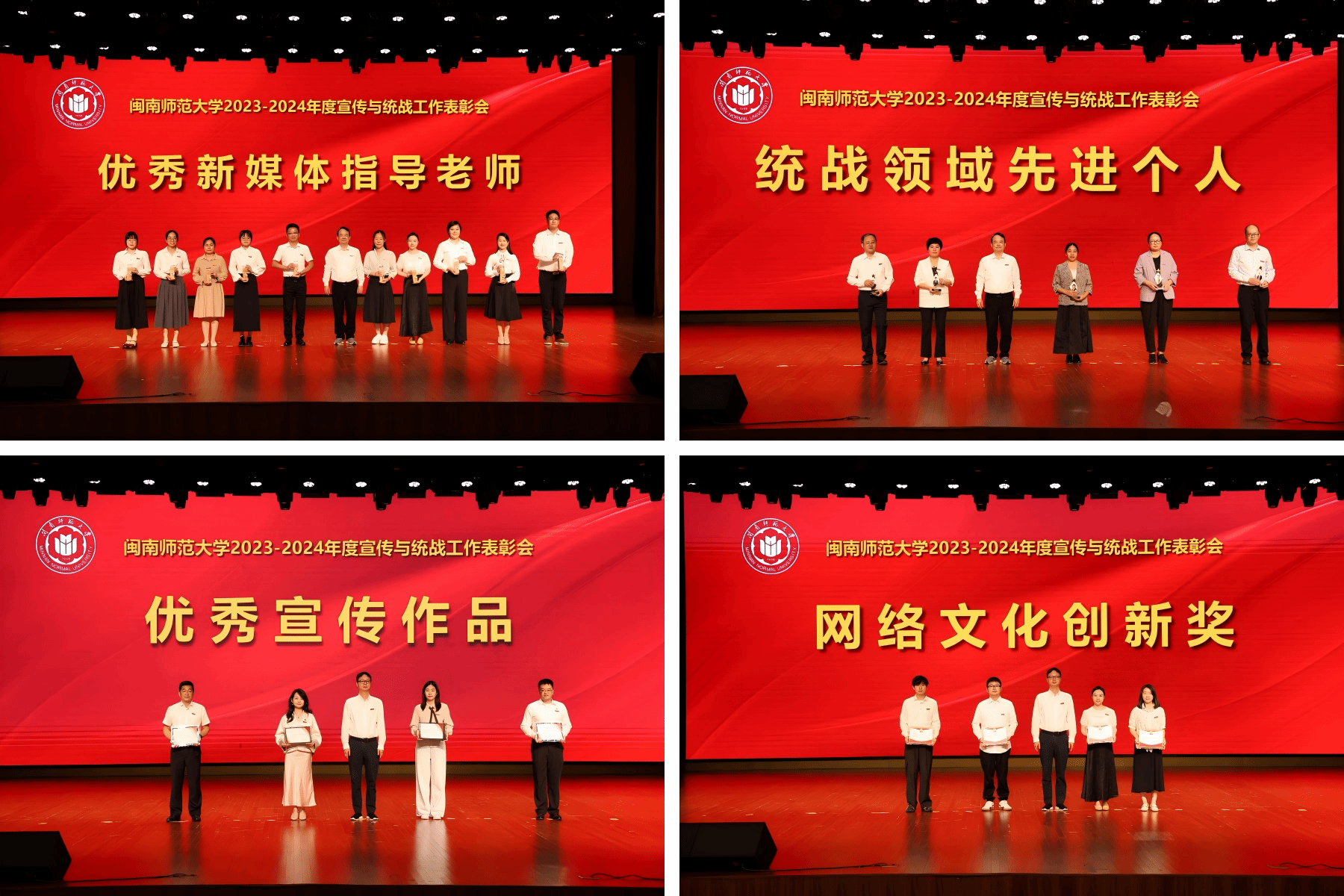 会上通过短片回顾了近年来学校宣传统战工作成效。在校党委领导下,各单位协同发力,推动宣传思想文化与统战工作提质增效:一是理论宣讲品牌突出,构建“一体两翼四维”理论武装体系和“一核四融五贯通”闽南文化育人体系,连续两年获评福建省高校思想政治工作精品项目,相关课题获全省高校党建调研成果一等奖;二是传播格局优化升级,形成“大宣传”联动机制,学校和二级单位推出和涌现出“我们这十年”“奋进闽师人”“闽师思政”“林语堂数字人”“易起优秀”“我与专业的故事”等一批优秀栏目和宣传品牌及“闽南文化+新媒体”项目,两岸师生共创作品百余部,学校重大活动多次受到中央主流媒体报道;三是统战法宝作用凸显,学校统战人士积极建言献策,取得丰硕成果;成立全国首家“两岸同胞铸牢中华民族共同体意识研究院”,统战部连续4年获评全省统战信息工作先进单位,两岸关系理论漳州研究基地连续五年评比获全省第一。