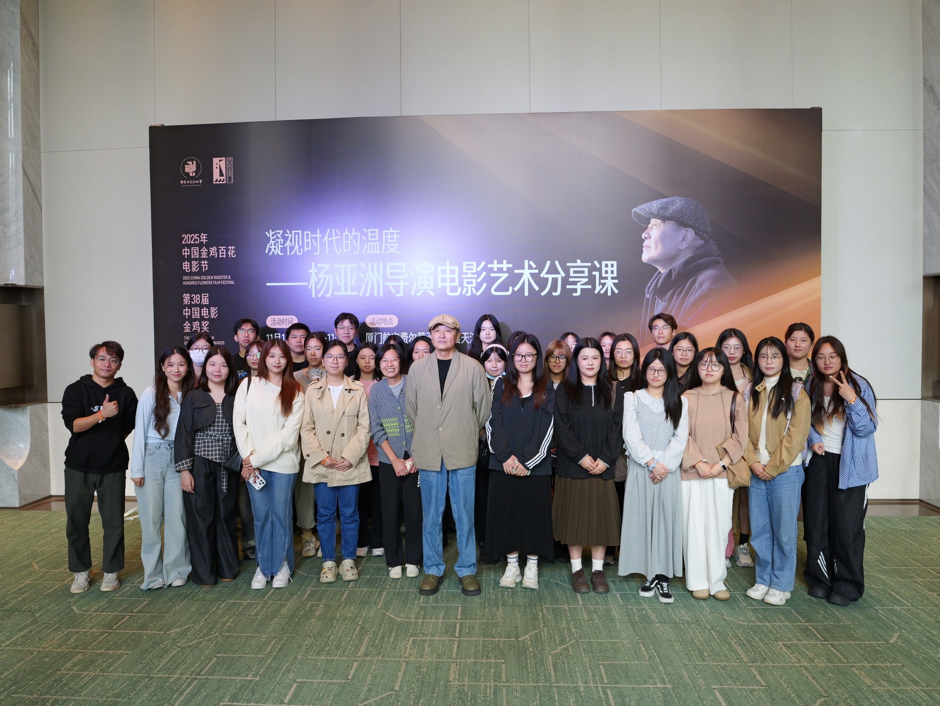 活动结束后,杨亚洲导演亲切回应师生邀请合影留念。他特别提及对漳州布袋木偶戏之美的欣赏,并以此为例,再次鼓励青年创作者要深深地贴近生活,从真实的文化土壤与人间烟火中汲取灵感,最终创作出那些“源于生活,又高于生活”的动人作品。