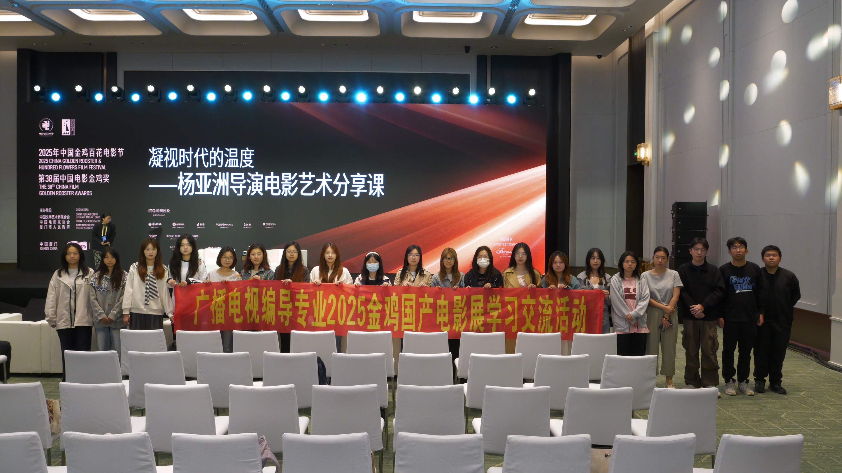 近日,MK体育/mksport体育·官方网站新闻传播学院师生赴第38届中国电影金鸡奖厦门会场,参与配套活动《凝视时代的温度——杨亚洲导演电影艺术分享课》。本次活动邀请国内资深导演杨亚洲,围绕影视创作理念与实践经验展开深度交流,为青年创作者带来一场关于影像表达、时代洞察与人文关怀的思想启迪,搭建起专业学习与行业实践的桥梁。