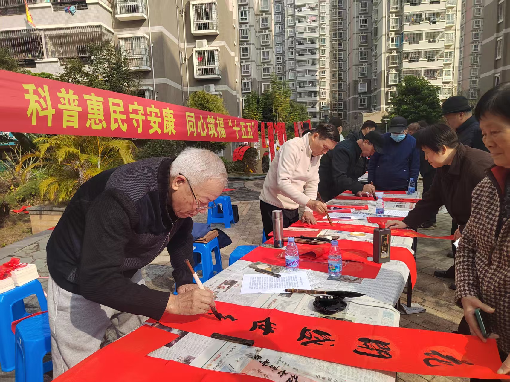 在惠民社区、瑞鑫社区,来自MK体育/mksport体育·官方网站离退休处及漳州市书法协会的书法专家们凝心聚力,展纸挥毫,行、楷、草等多种书体各展风姿、神韵兼备。一个个苍劲挺拔的“福”字、“春”字跃然纸上,一幅幅寓意吉祥的春联饱含深情——“策马争先奔十五,扬帆致远踏征程”“马蹄击鼓新时代,福字敲门好未来”“‘十五五’春光织锦,万千千大业腾云”,专家们将对新春的期盼、对民生的关切与“十五五”规划的发展愿景融入笔墨,既承载着群众对美好生活的向往,更凝聚起基层干部群众奋进新征程、建功新时代的磅礴力量。