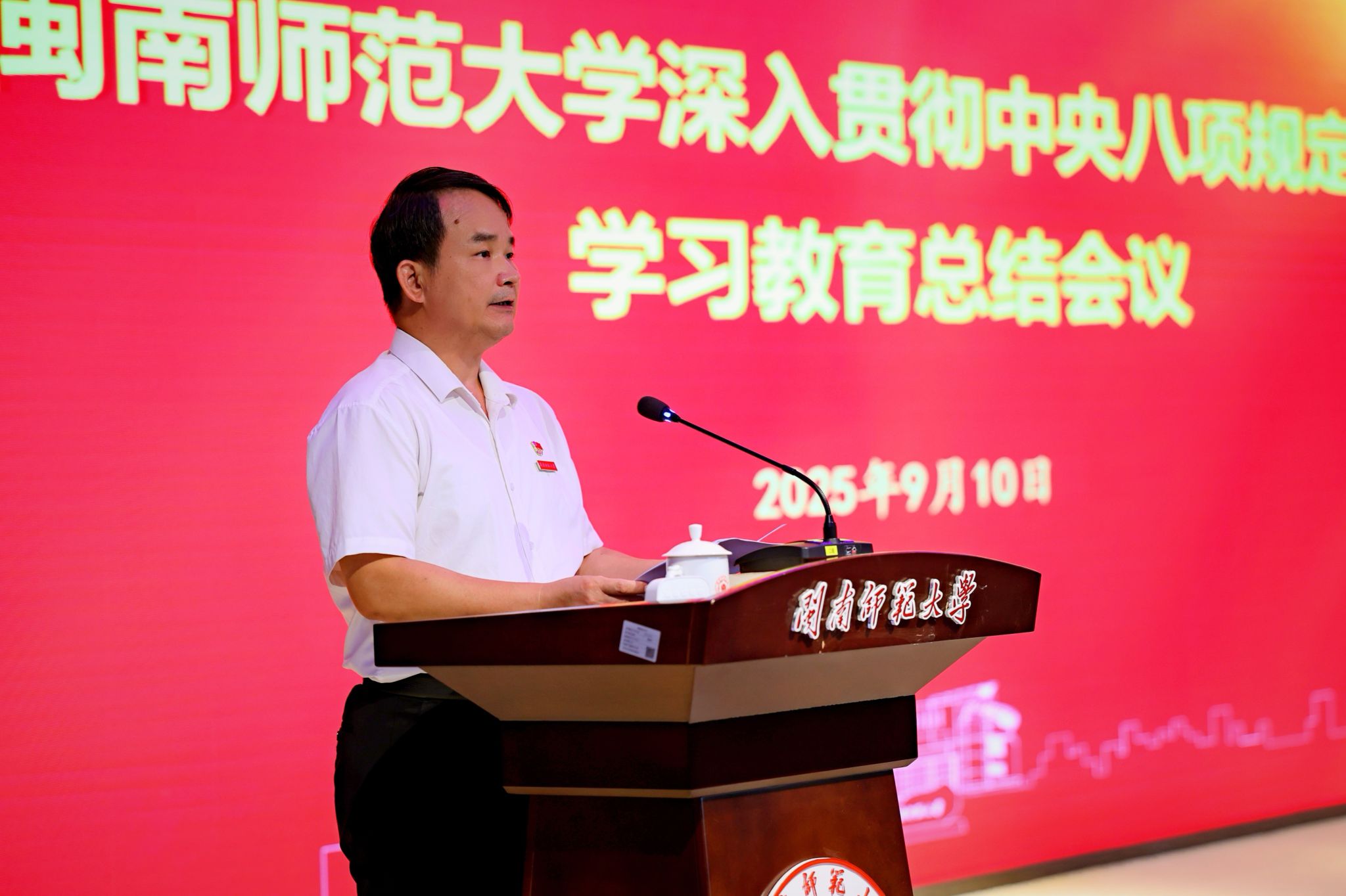 会议强调,持续巩固拓展深入贯彻中央八项规定精神学习教育成果是一项严肃的政治任务,必须抓常抓长、久久为功。全校各级党组织要持之以恒加强作风教育,深化拓展抓好理论武装,在常学常新中夯实思想根基。要持续深化纠治“四风”,在抓常抓长中破除顽瘴痼疾,积极打造具有闽南师大辨识度的廉洁文化建设范式。要着力强化监督执纪,严管厚爱结合、激励约束并重,在从严从实中保持高压态势。要健全完善制度机制,系统梳理学习教育经验,动态修订完善或清理制度规范,在务实管用中扎紧制度笼子。要层层压实工作责任,构建高效协同监督机制,在知责尽责中推动落地见效,以更加坚定的决心、更加务实的作风、更加有力的举措,不断把作风建设引向深入,努力营造风清气正、干事创业的良好政治生态和育人环境,为学校加快“双一流”建设提供有力作风保障。