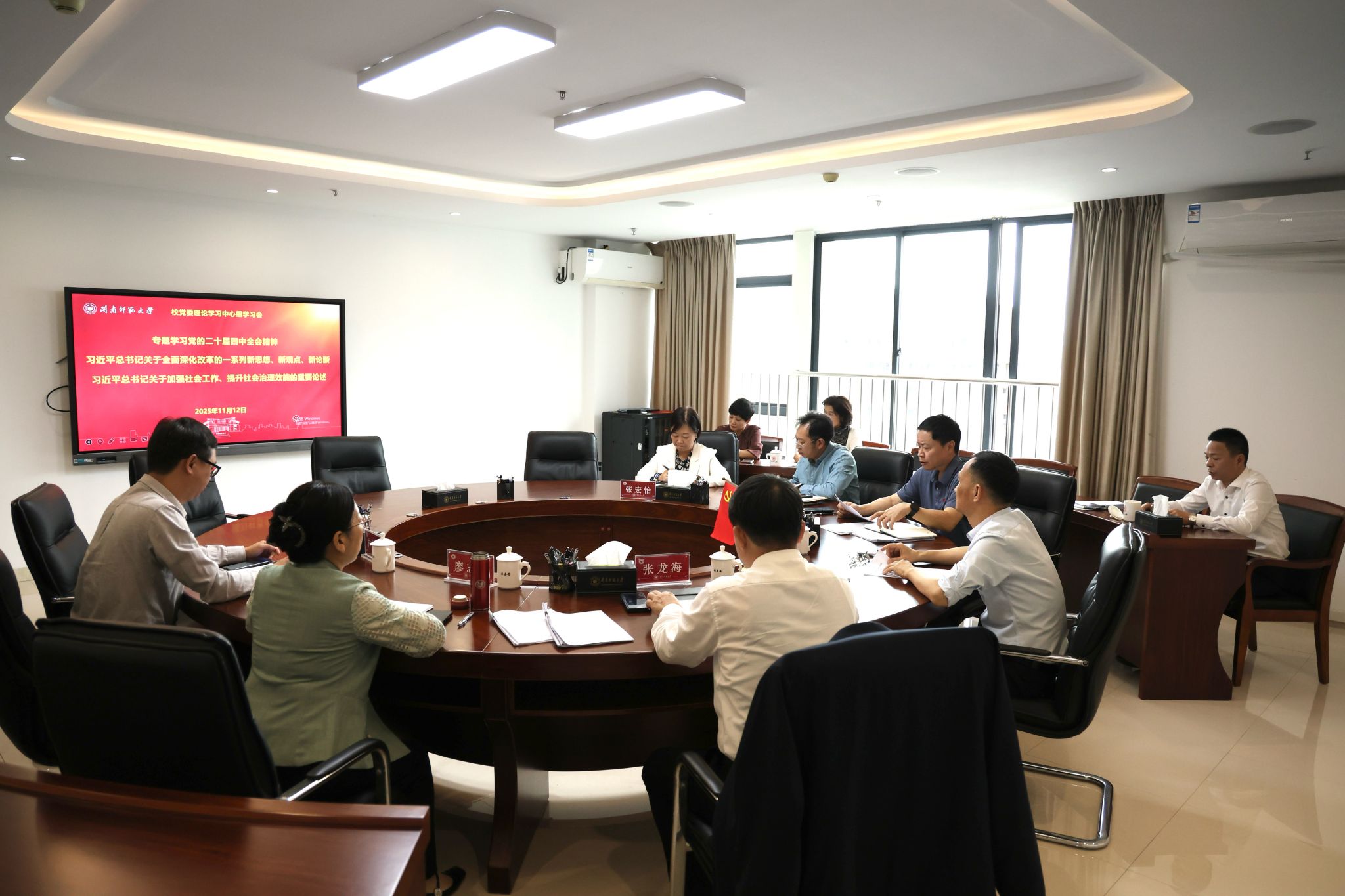 11月12日上午,校党委理论学习中心组召开学习会,专题学习党的二十届四中全会精神以及习近平总书记关于全面深化改革的一系列新思想、新观点、新论断和习近平总书记关于加强社会工作、提升社会治理效能的重要论述。与会人员在集体学习的基础上,围绕“以党的二十届四中全会精神为指导,科学谋划学校‘十五五’规划,走好高水平师范大学建设新路”开展集体研讨。全体校领导、校党委理论学习中心组秘书参加。